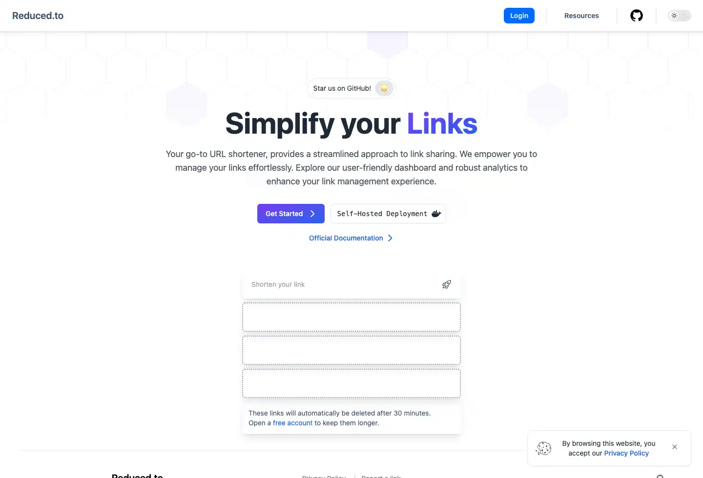 The FREE Open-Source URL Shortener | Reduced.to